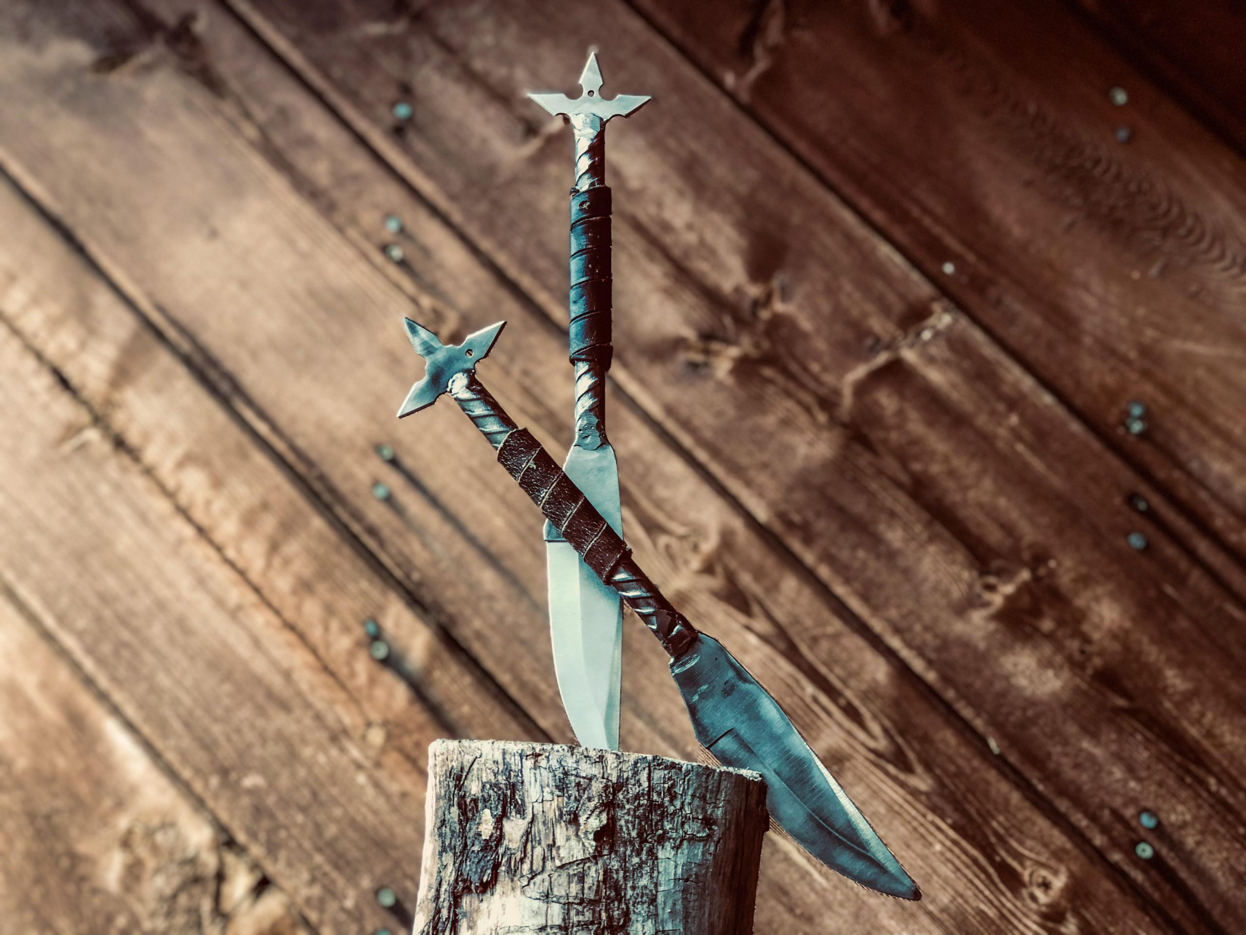 This is a set of two unique hand crafted welded knives made by Justin at Light it up designs.
